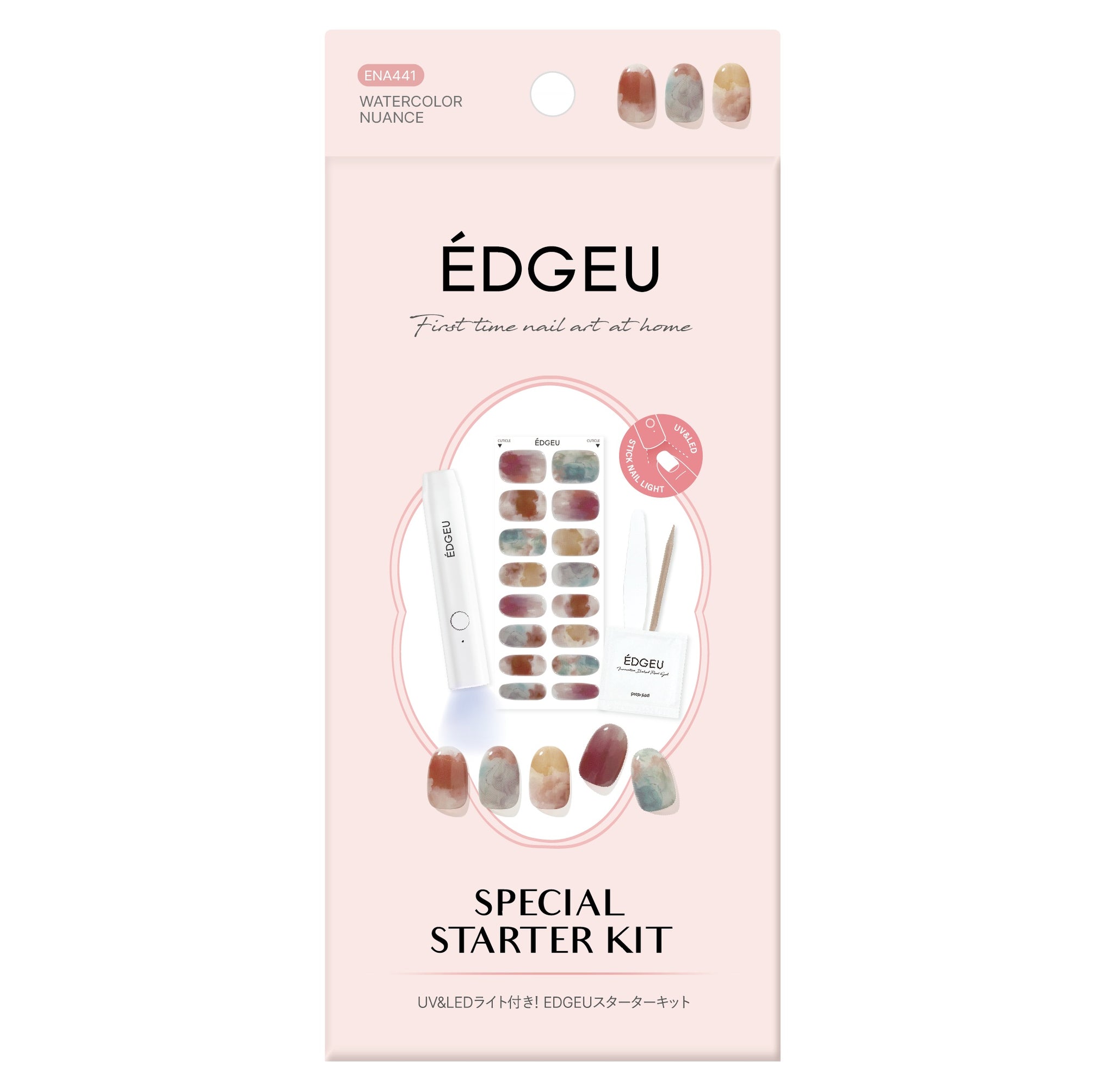 ネイル初心者の方でもサロン級ネイルを!人気のデザインとUV&LEDスティックネイルライトがセットになったスペシャルスターターセットです。セルフネイルをより楽しく、高品質なクオリティで。